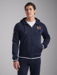 Брюки мужские из плотного и мягкого хлопкового трикотажного полотна с изнаночным начесом. Брюки прямые с прорезными карманами, с открытой молнией. Пояс брюк из основной ткани, по линии талии регулируется шнурком. На правой половинке настрочен шеврон с фирменным логотипом.