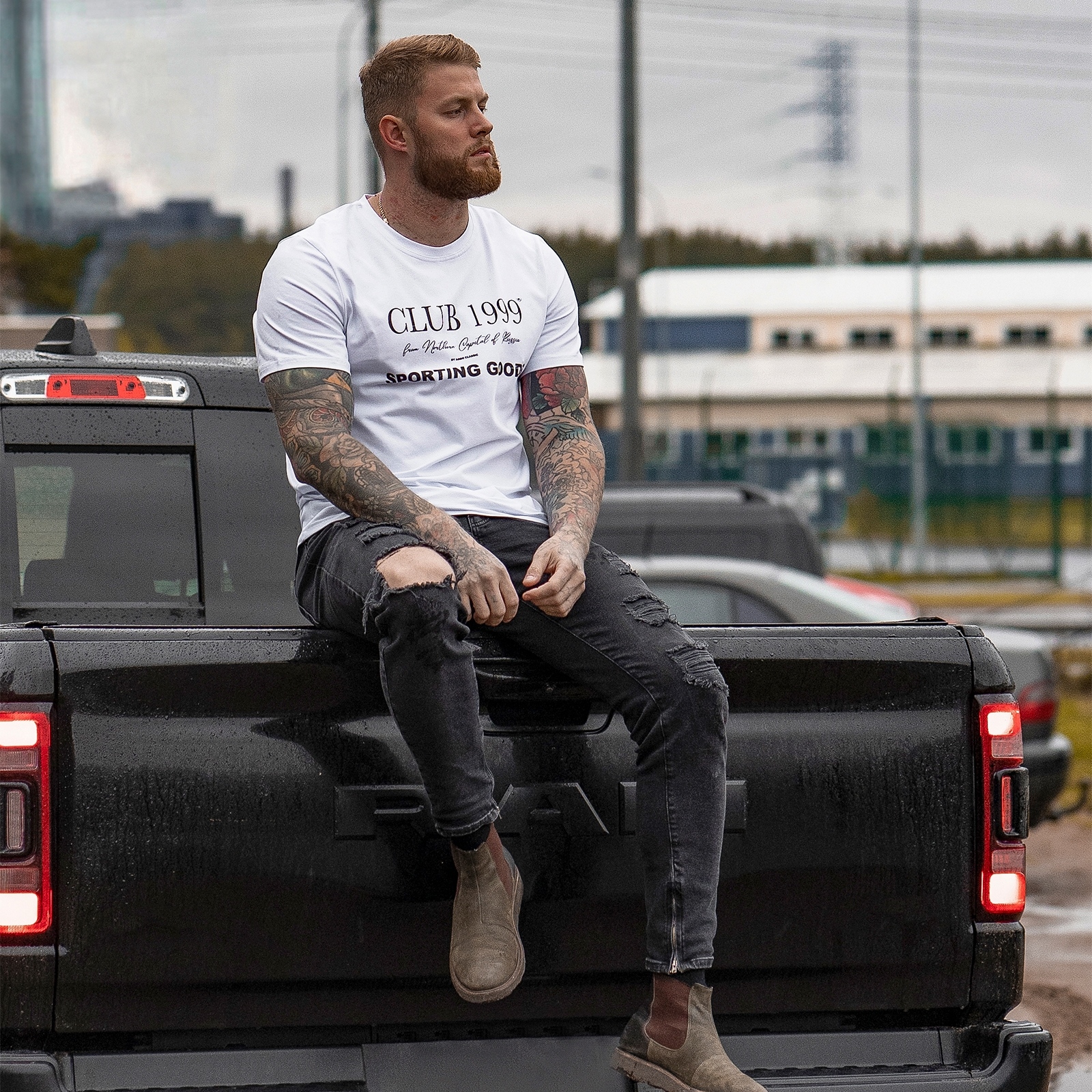 Мужская футболка с круглым вырезом горловины (принт "Club 1999").Материал: