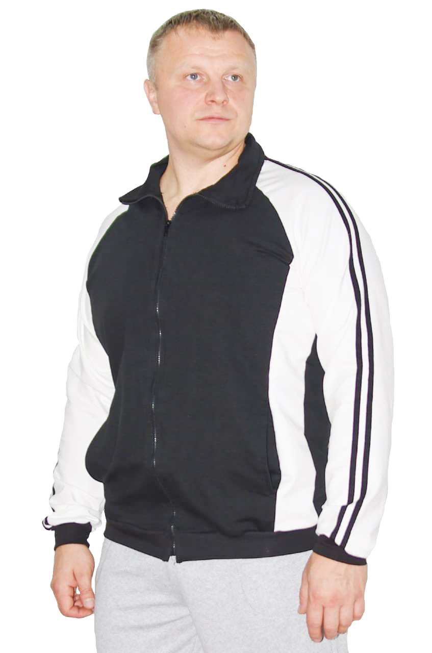 Оригинальная спортивная олимпийка выполнена из плотного текстиля контрастных цветов, модель прямого покроя с воротником-стойка и застежкой на молнии. Длинные рукава с эластичными вставками на манжетах и два глубоких кармана, прекрасно дополняют контрастные лампасы. Изделие выполнено из плотного, качественного трикотажа, футера с лайкрой.