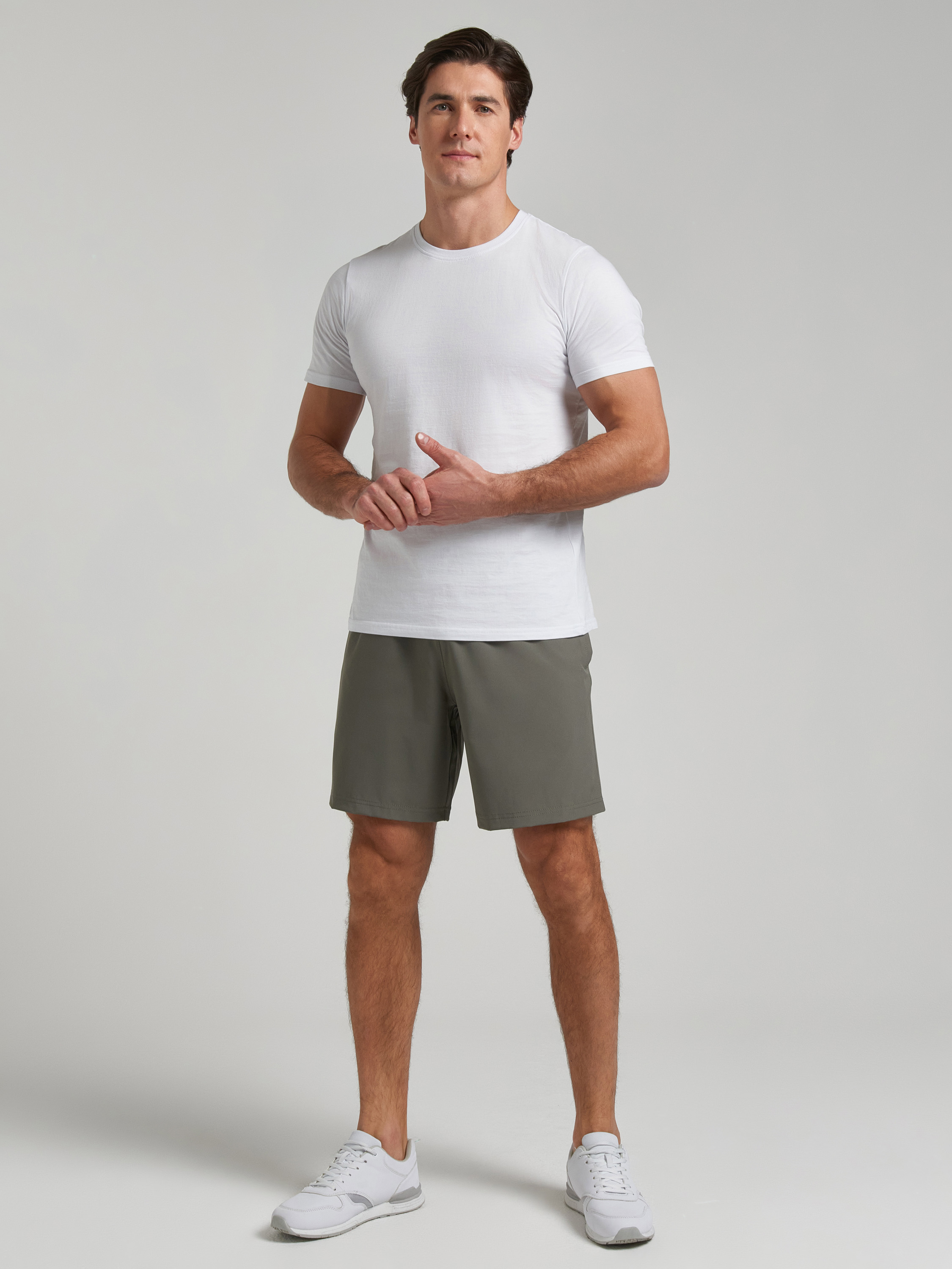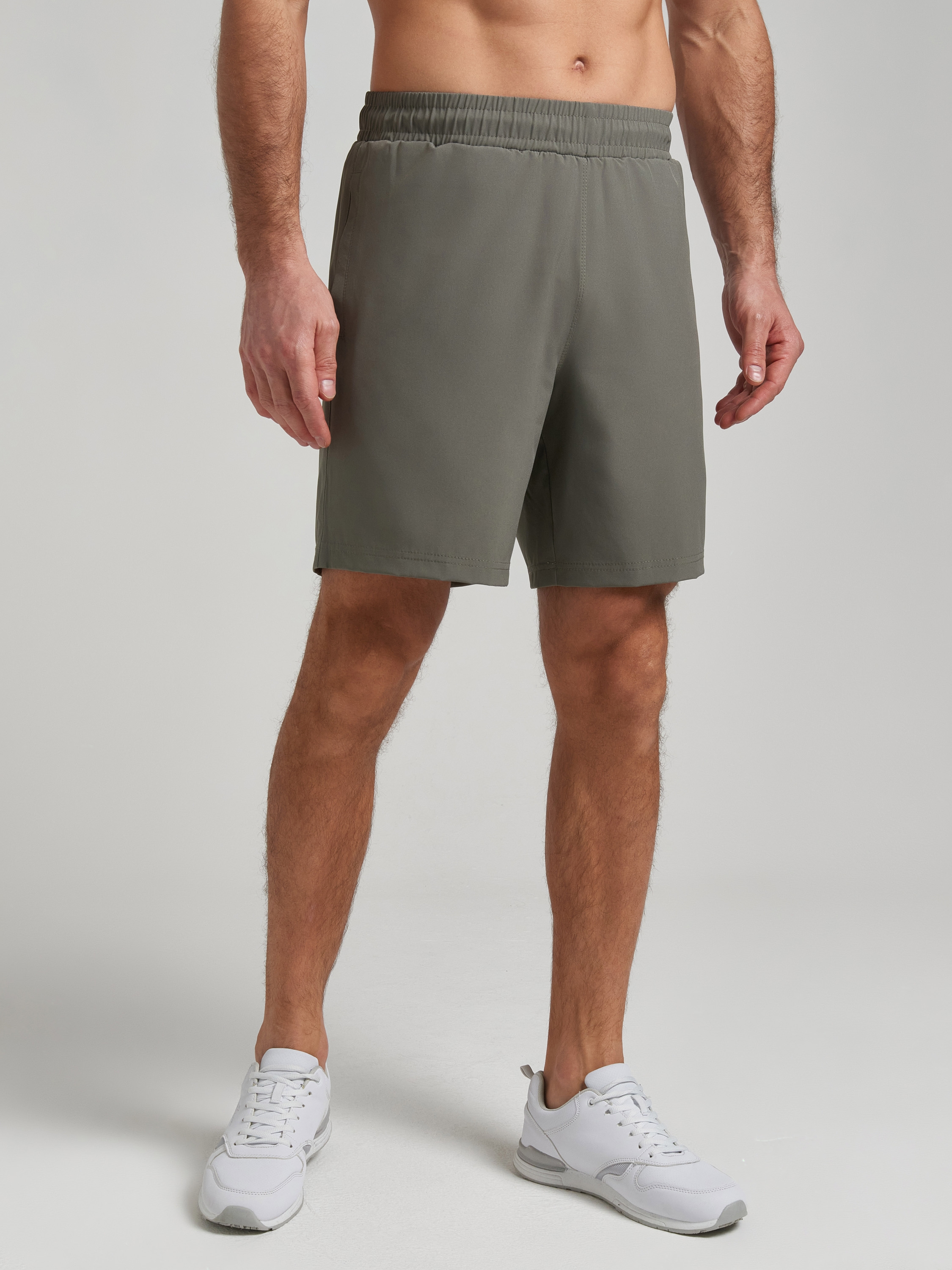Классические мужские шорты из легкой эластичной плащевки. В боковых швах обработаны карманы. Пояс шорт по талии регулируется шнуром. 94% полиэстер, 6% лайкра