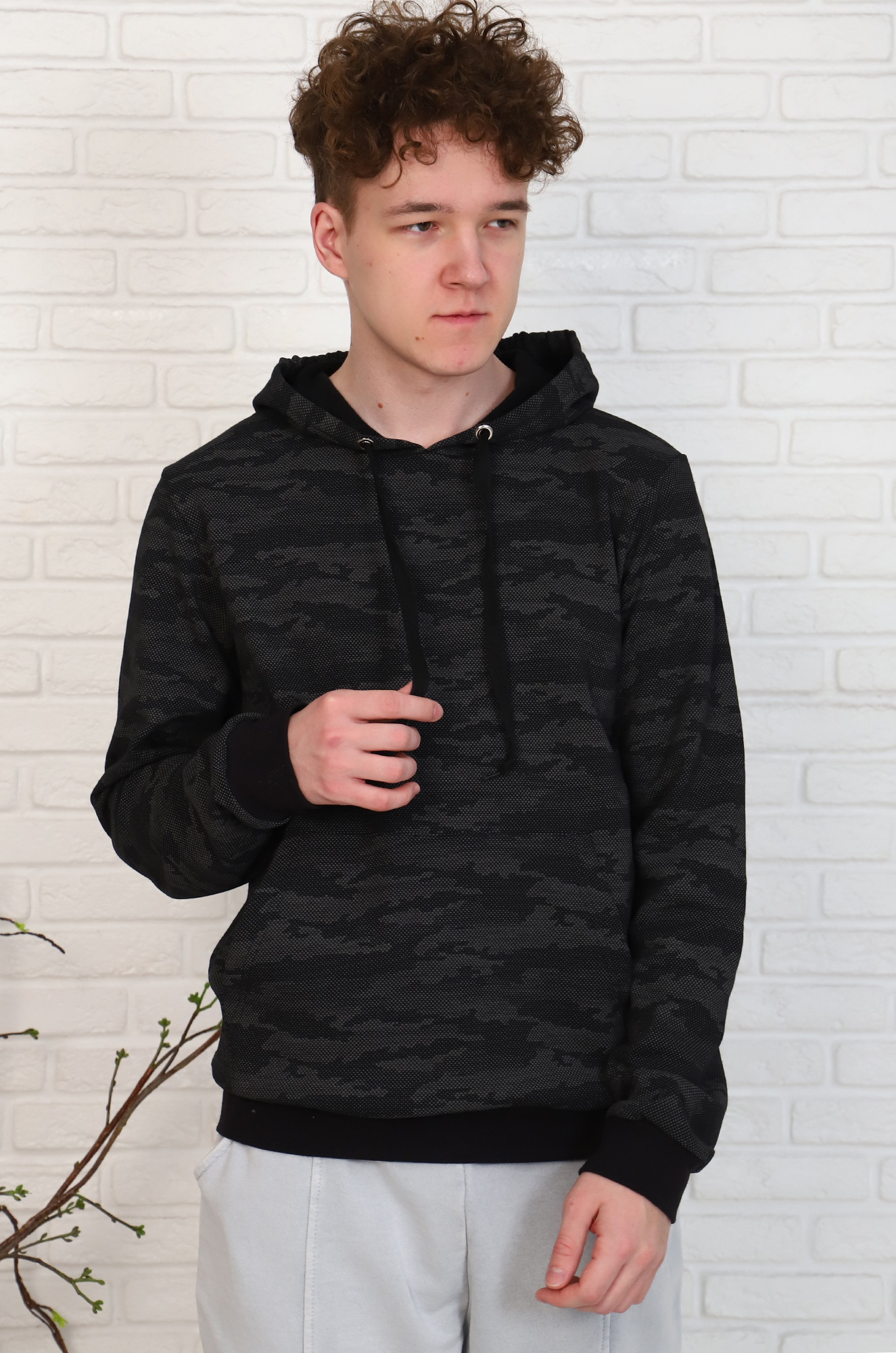 Ткань - футер двухнитка с небольшим начёсом. Приятная к телу и мягкая. Расцветка ткани с набивным эксклюзивным рисунком в стиле "милитари" делает модель интересной и эффектной.