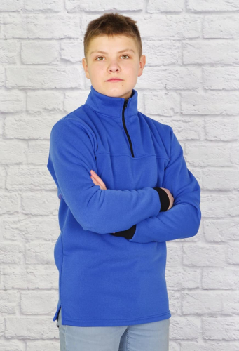 Удобная спортивная толстовка прямого кроя с отрезной кокеткой. Воротник - стойка на молнии, хорошо защищает от ветра, по бокам небольшие разрезы, рукава на манжетах из эластичной рибаны.