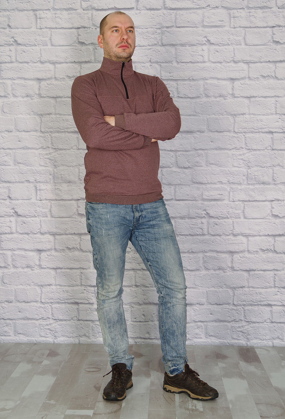 Удобная и тёплая мужская толстовка с отрезной кокеткой из облегчённого футера с начёсом с добавлением ПЭ, плотность 190 г/2м. Воротник - стойка на молнии хорошо защищает от ветра, низ и рукава модели из эластичной рибаны. Хороший вариант на каждый день.