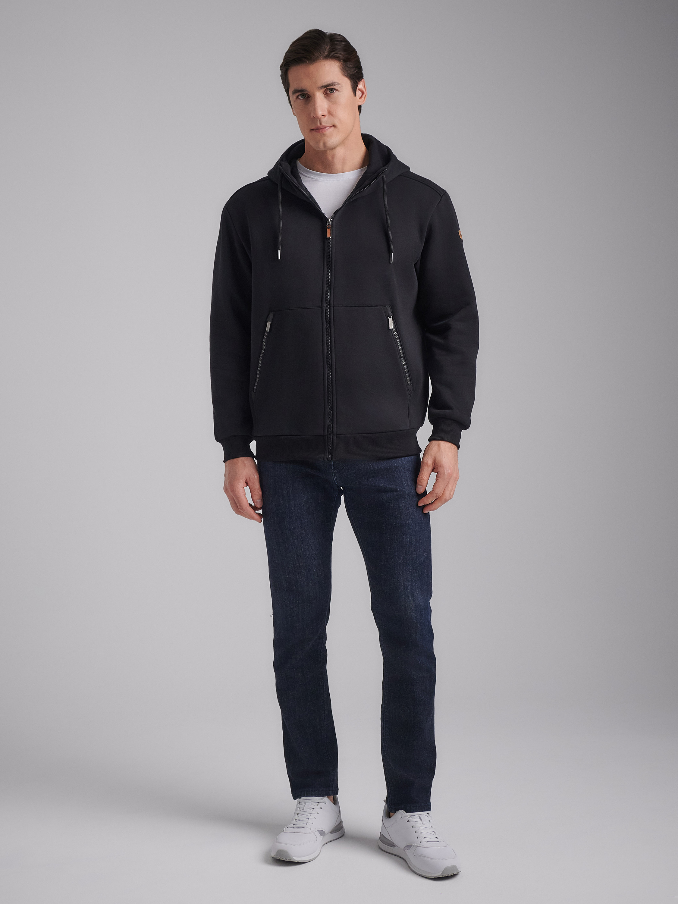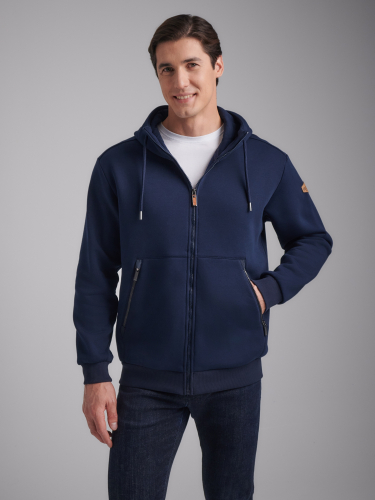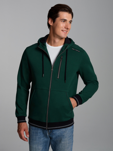 Толстовка изготовлена из плотного хлопкового трикотажного полотна с изнаночным начесом. Изделие на поясе, с капюшоном, застегивается на молнию. Удобные карманы «Кенгуру», застегиваются на молнии. Рукава втачные. Капюшон со стойкой, по лицевой части регулируется шнуром. Пояс и манжеты куртки изготовлены из плотной эластичной трикотажной резинки. На левом рукаве настрочен шеврон с фирменным логотипом. 65% хлопок, 35% полиэстер