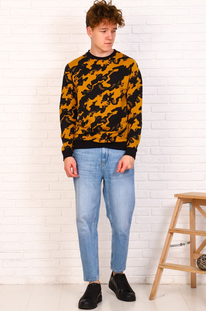 Стильная мужская толстовка из петельчатого футера с лайкрой. Оригинальные принты на ткани делают модель модной, интересной и яркой! Низ изделия, горловина и рукава с отделкой из рибаны.