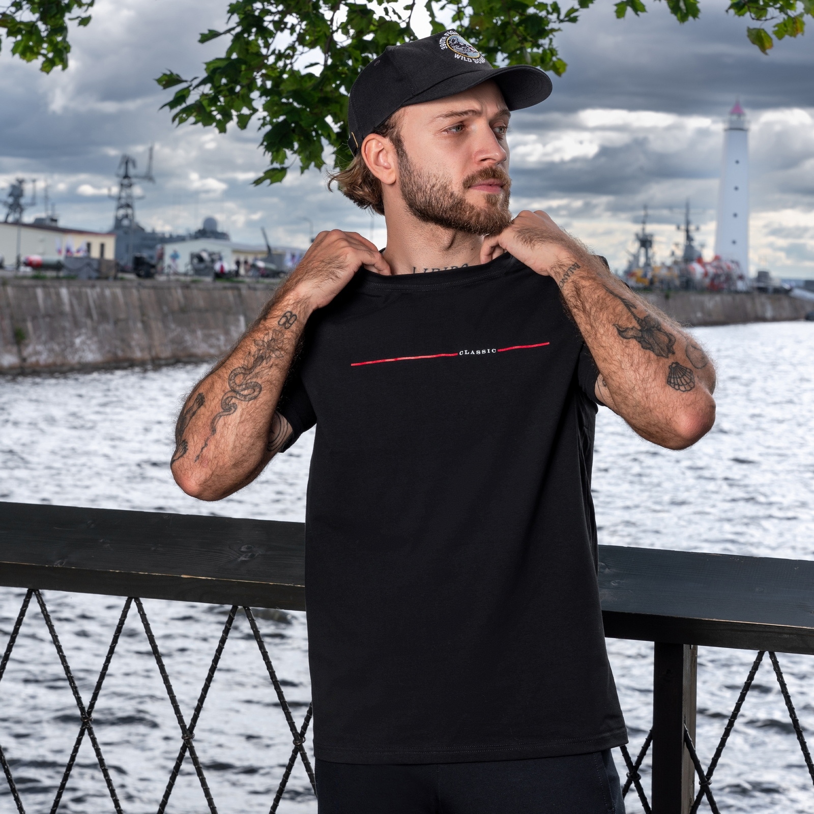 Cotton - материал из натуральных волокон, который удобен в носке, быстро впитывает и отводит от тела влагу, хорошо пропускает воздух и не раздражает кожу. Хлопок гигиеничен, обладает устойчивостью к истиранию и разрыву, помогает балансировать температуру для избегания перегрева. В стирке требует более бережного обращения. Рекомендуется утюжить и стирать вывернутыми (особенно изделия с принтом) на изнаночную сторону при температуре 30 градусов.ВНИМАНИЕ! Оттенок цвета ткани может отличаться в зависимости от партии товара, также могут быть незначительные отличия цветовых оттенков разных деталей одного изделия. Производители ткани не считают это браком, объясняя это технологическими особенностями производства. Цветовая гамма товара может быть изменена (в рамках допуска) производителем трикотажных полотен в зависимости от серии поставки без предварительного уведомления.В связи с этим, подбор комплекта одежды в одном оттенке возможен только в процессе формирования единого заказа.Состав: 92% Cotton, 8% Elastane черный