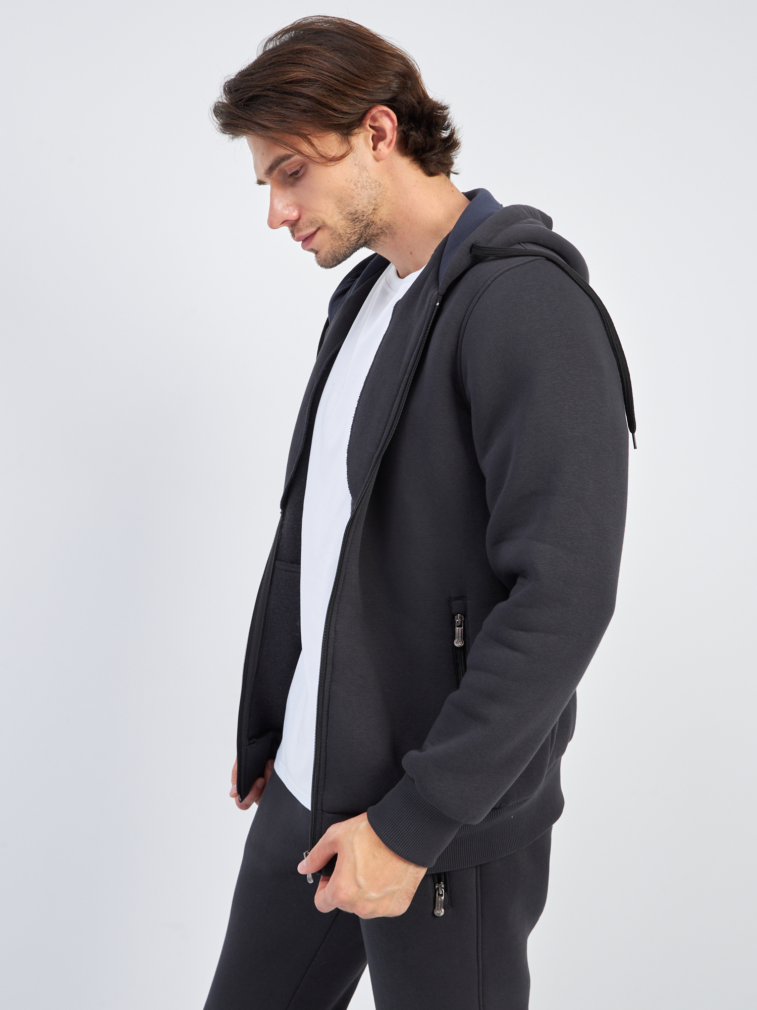 Утеплённая спортивная трикотажная толстовка. Начёс с внутренней стороны полотна обеспечивает прекрасную защиту от холода. Толстовка с поясом из кашкорсе и капюшоном, ширина которого регулируется шнурком. Передние карманы фиксируются молниями. Изделие удобное и практичное. Может использоваться как спортивная экипировка для занятий спортом на открытом воздухе в холодный день, так и для повседневного использования всеми, кто ценит комфорт.