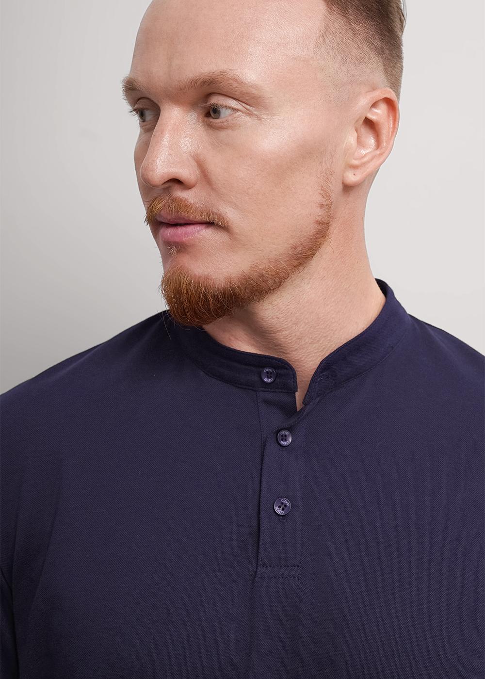 Футболка-поло с воротником-стойка и функциональной планкой на пуговицах, из хлопкового трикотажного полотна пике. Составит отличный комплект с брюками для школы и офиса.