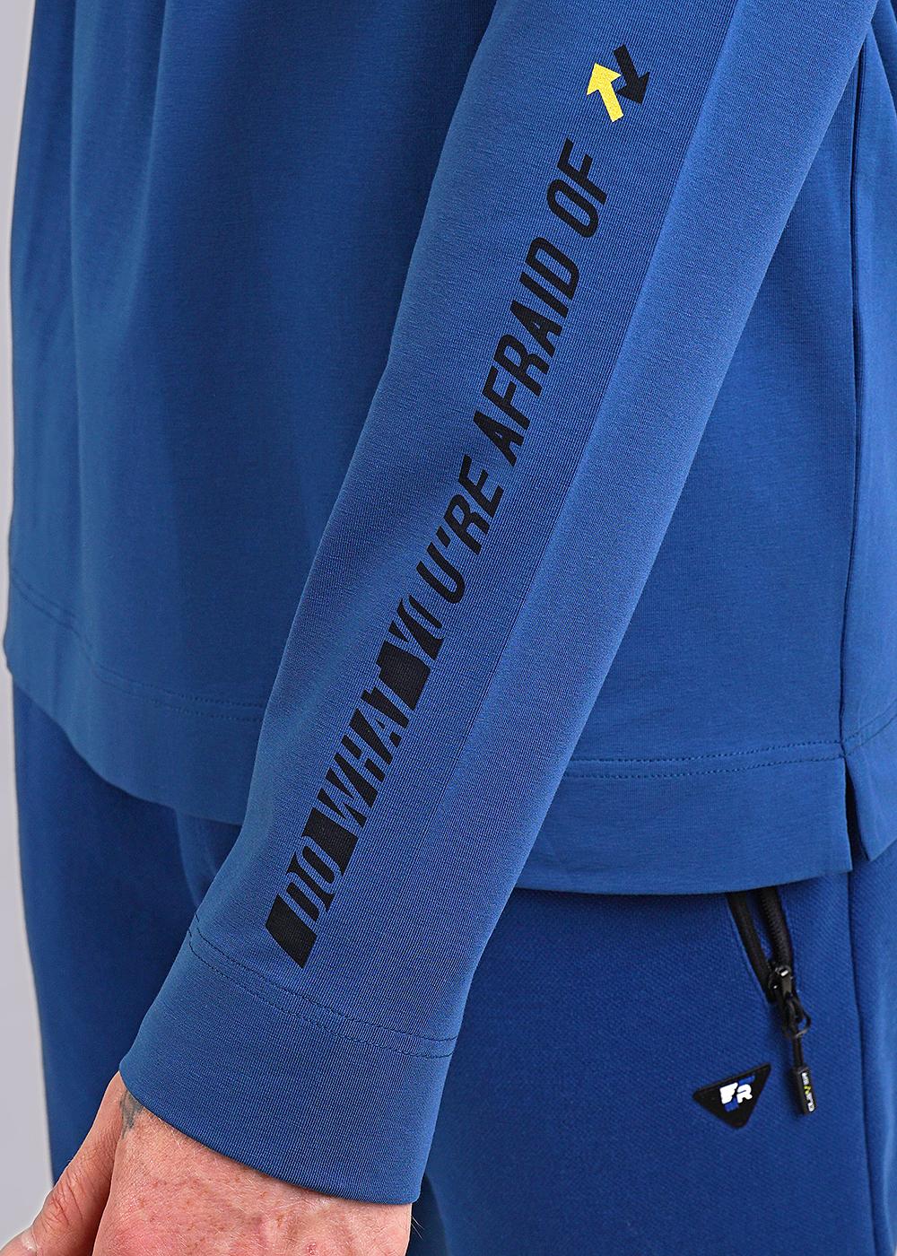 Лонгслив из дышащего хлопкового полотна с длинным рукавом и округлой горловиной. Яркости в модель добавляют шрифтовые принты и дизайнерская фурнитура. Данная модель прекрасно впишется в любой гардероб.