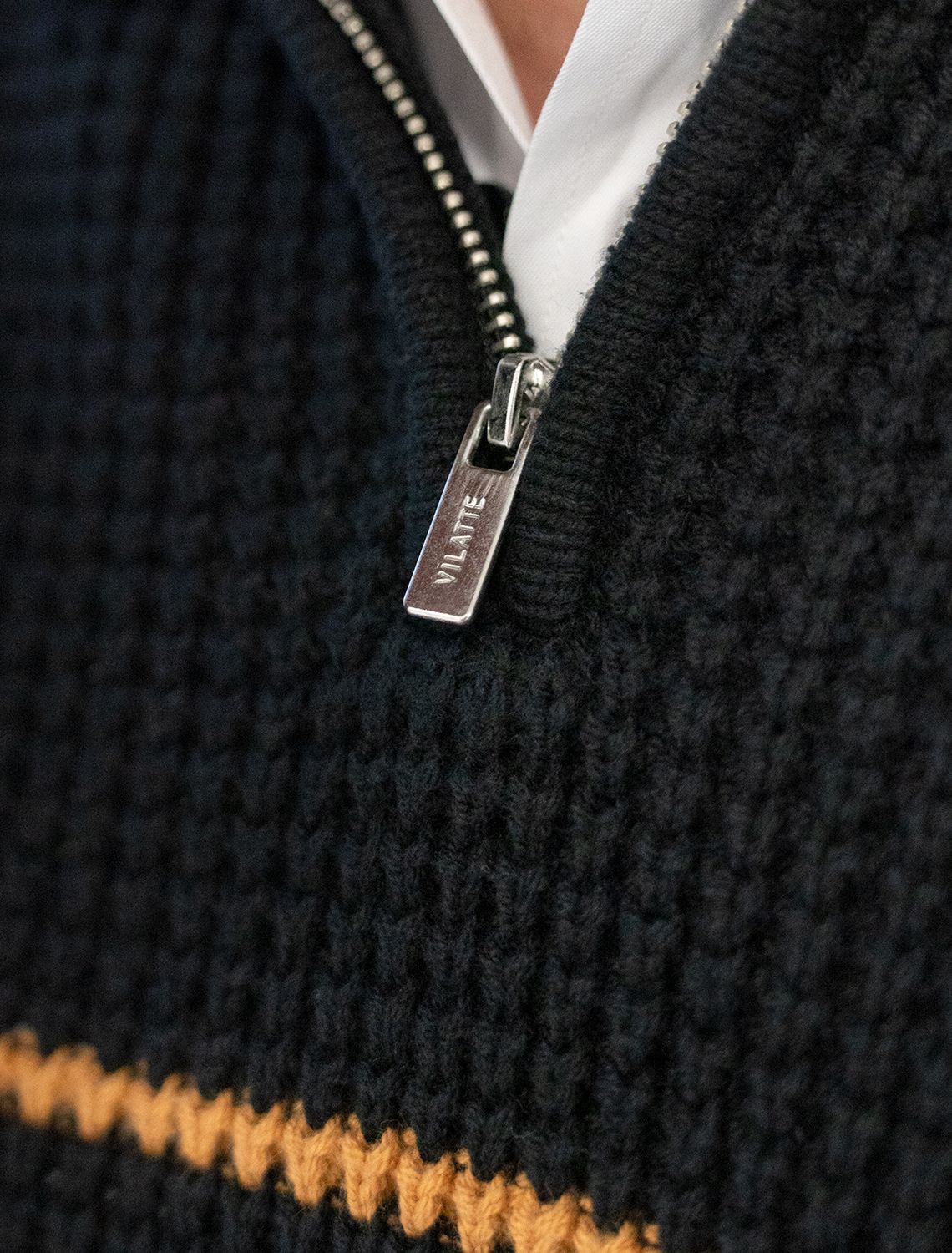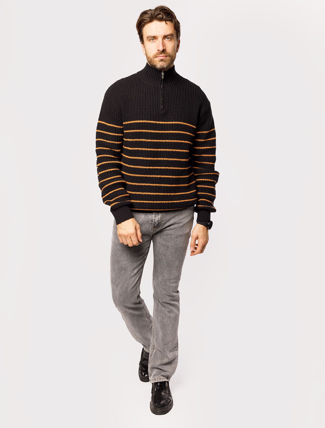 Свитер фактурной крупной вязки с металлической молнией U39.009 черный