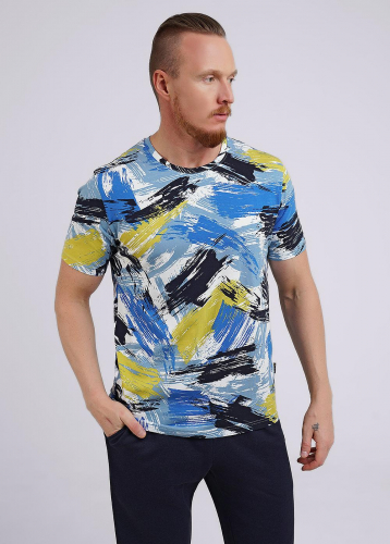 Мужская футболка oversize из дышащего хлопкового полотна. Модель не сковывает движение, придает удобство и комфорт. Дополняется за счет оригинального принтового решения по горловине и рукавам. Отлично смотрится с джинсами и шортами.