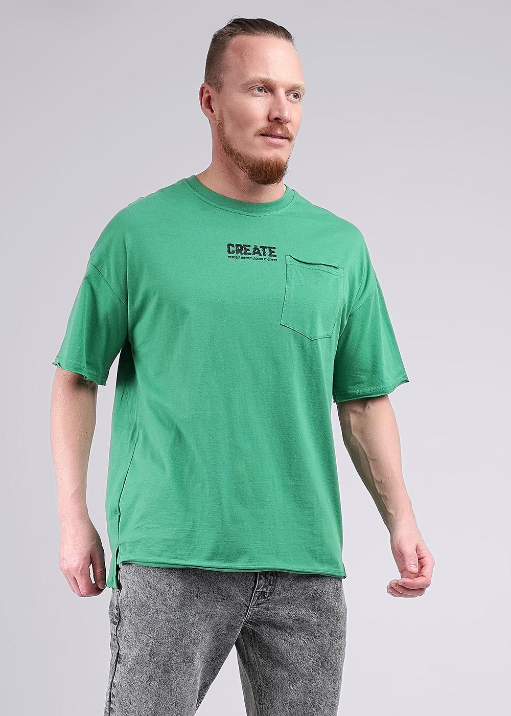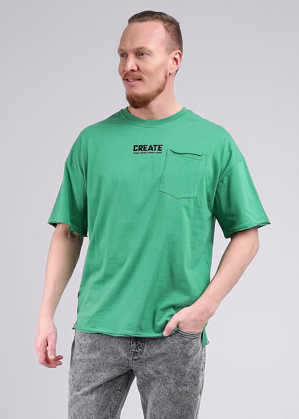 Мужская футболка oversize из дышащего хлопкового полотна.Модель не сковывает движение, придает удобство и комфорт. Изделие дополнено фигурным карманом, а так же шрифтовым принтом. Отличный вариант для прогулок и встреч с друзьями.