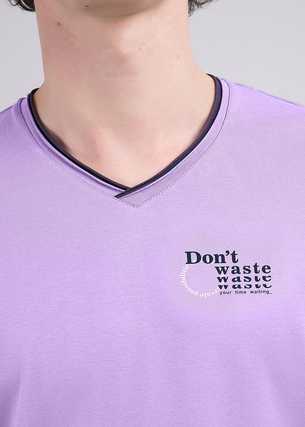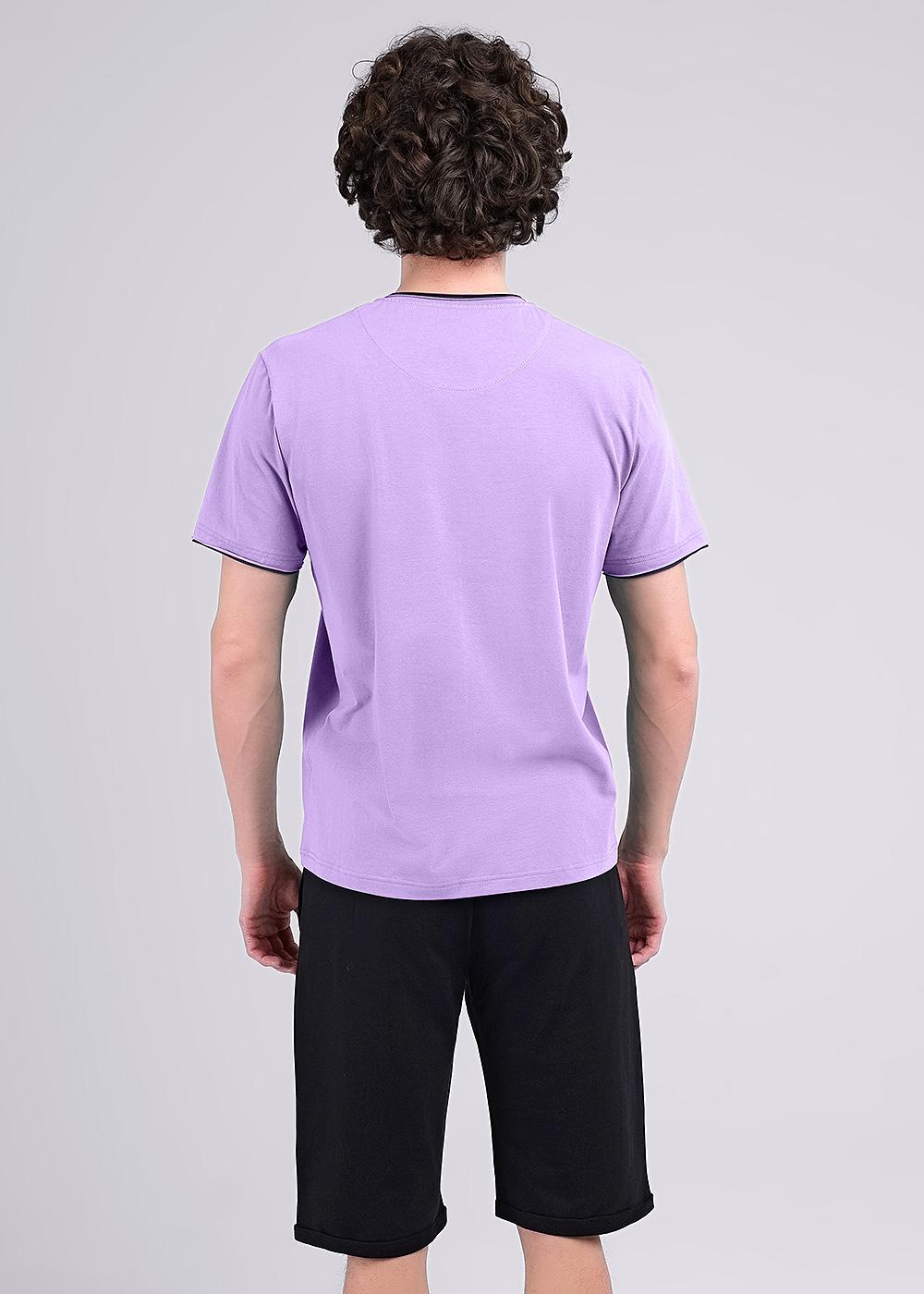 Футболка мужская из хлопкового полотна с эластаном. Изделие с V-образным вырезом горловины и коротким втачным рукавом. Футболка отличается за счет контрастных вставок по горловине и манжету, фирменной фурнитуре, а так же лаконичному принту.