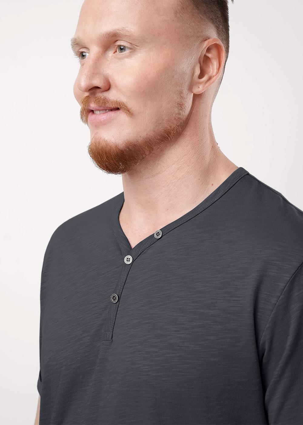 Футболка с планкой на пуговицы из фактурного хлопкового полотна флам. Данную модель дополняет принт и имиджевая фурнитура. Прекрасное решение для встречи с друзьями или похода на работу. Составит комплект с брюками или джинсами.