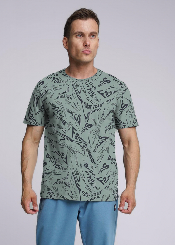 Стильная мужская футболка с круглым вырезом горловины и коротким рукавом. Изделие из приятного хлопкового полотна с эластаном в яркую авторскую набивку. Модель отлично подойдет к брюками или джинсам.