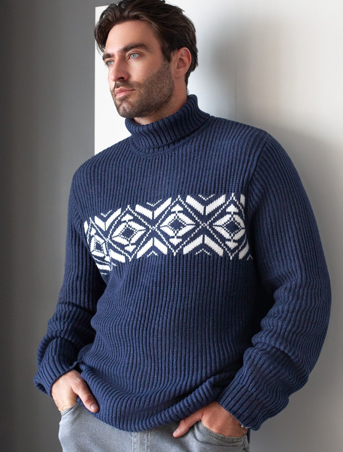 Свитер крупной фактурной вязки выполнен из мягкой хлопковой пряжи с акрилом. Теплая фактура изделия подчеркнута скандинавским узором. Длинный ворот защитит от ветреной погоды и поможет собрать, уютный комплект в расслабленном стиле в осенне-зимний период. Не препятствует циркуляции воздуха, но при этом хорошо сохраняет тепло и не колется, поэтому свитер комфортно носить даже на голое тело. Модель дополнена фирменным логотипом бренда.