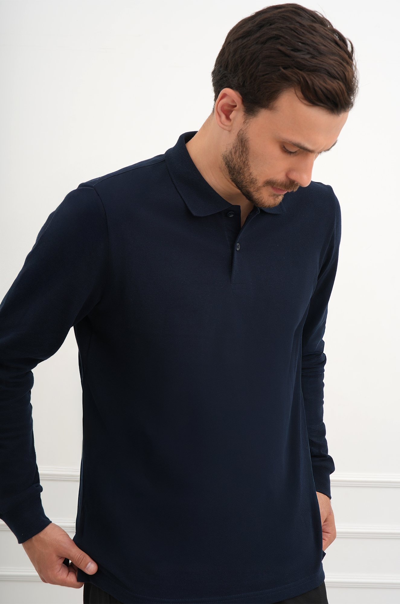 Темно-синий лонгслив поло — лаконичный..показать фаворит мужского гардероба, который всегда к месту. Идеальный баланс между комфортом и стильным минимализмом для повседневных образов.