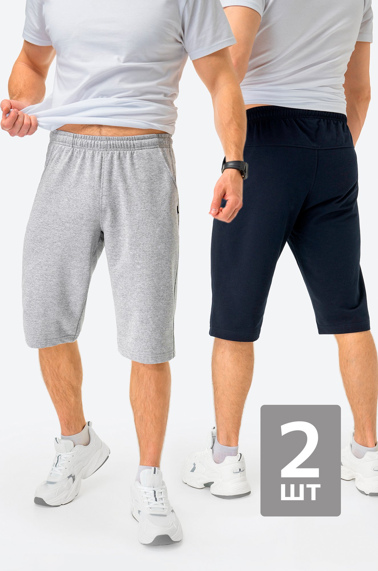 *замеры выборочные, могут незначительно отличаться. бор мужских шортов из 2 штук представлен в базовых синем и сером цветах и выполнен из приятного к телу хлопка. Свободный крой сохраняет привычный ритм жизни парня и делает шорты идеальными для любого случая: поездки, туризм, тренировки и активный отдых на природе.