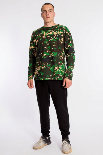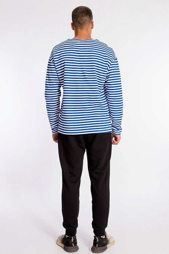 Тельняшка мужская выполнена из полотна с начёсом. Покрой свободный, горловина с круглым вырезом, длинный рукав.