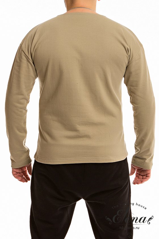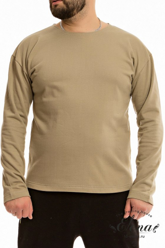 Тельняшка мужская выполнена из однотонного полотна с начёсом. Покрой свободный, горловина с круглым вырезом, длинный рукав.