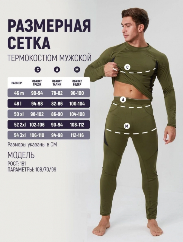 Данная модель идеально подходит в наше непростое время (мобилизация и тд) так как отлично сохраняет тепло и отводит влагу! Всем удачи друзья!!!Термокомплект – необходимый предмет одежды для активного отдыха и работы, а также идеальный выбор для повседневного использования. Он греет и отводит влагу от тела, создавая комфортные условия при любой интенсивности движения. Но только тогда, когда он подобран правильно! Наш термокомплект относится к разряду согревающей одежды, поэтому отлично подойдет тем, кто проводит много времени на свежем воздухе при низких температурах. Комплект для мужчин представляет собой лонгслив с длинным рукавом и штаны (термоштаны). Подходит для ежедневных прогулок, рыбалки, охоты и походов, подходит как для занятий спортом, так и для повседневной носки. Материал обладает высоким уровнем терморегуляции, отлично поглощает влагу, поэтому в нашем комплекте Вам будет тепло и комфортно вне зависимости от активности и температуры воздуха, и в помещении, и на улице. Теплый низ и кофта гипоаллергенны, не впитывают запахи, обеспечивают комфорт во время активности. Эластичный трикотаж обеспечивает прилегание изделия к телу, а мягкий внутренней слой, который абсолютно не колется, позволяет смело надевать комплект на голое тело, не опасаясь раздражения кожи. Удобные манжеты на рукавах защищают от ветра. Влагоотводящее белье используют под лыжный костюм, как комплект для активного отдыха осенью, костюм для сноуборда мужской, сноубординга, фигурного катания, беговых тренировок и занятий футболом в холодное время года. Маломерят на один размер.
