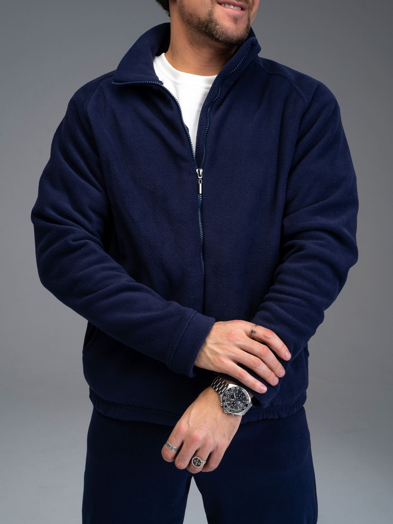 Толстовка из флиса темно-синего цвета на молнии FiftyPates — идеальный выбор для активных мужчин, ценящих комфорт и практичность. Изготовленная из 100% полиэстера, она обладает отличной устойчивостью к истиранию и не мнется, сохраняя безупречный вид даже после многочисленных стирок. Быстросохнущая ткань обеспечит комфорт в любой ситуации, а ворсистая фактура материала подарит приятные тактильные ощущения. Кофта оснащена прорезными карманами для удобства хранения мелочей и подойдет как для повседневной носки, так и для занятий спортом. Модель доступна в размерах для высоких мужчин и мужчин среднего роста.