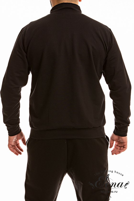 Мужская толстовка из однотонного футера с лайкрой черного цвета обещает комфорт, стиль и практичность в одном изделии.