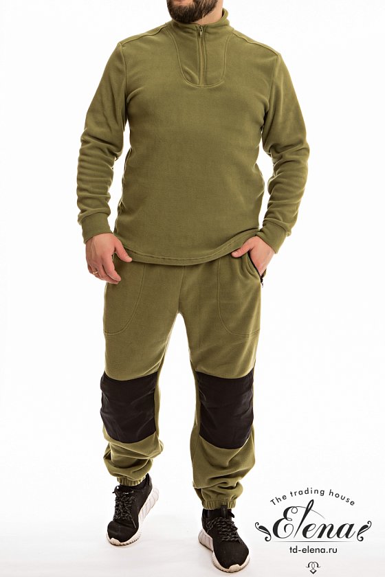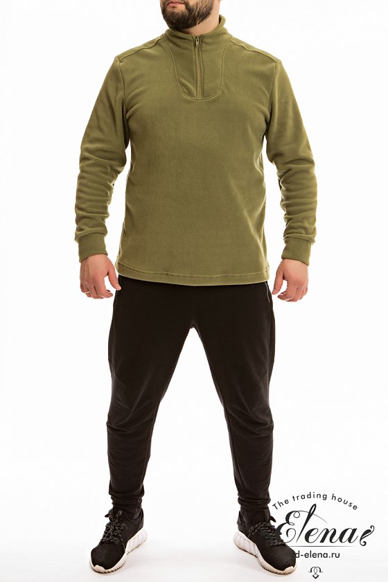 Мужская толстовка из флиса с воротником-стойкой, втачными рукавами с манжетами и короткой застежкой на молнию.