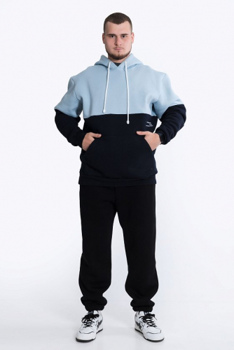 Представляем тёплую толстовку из футера 3-х нитки с начёсом в двухцветном исполнении: сероголубой и чёрный.