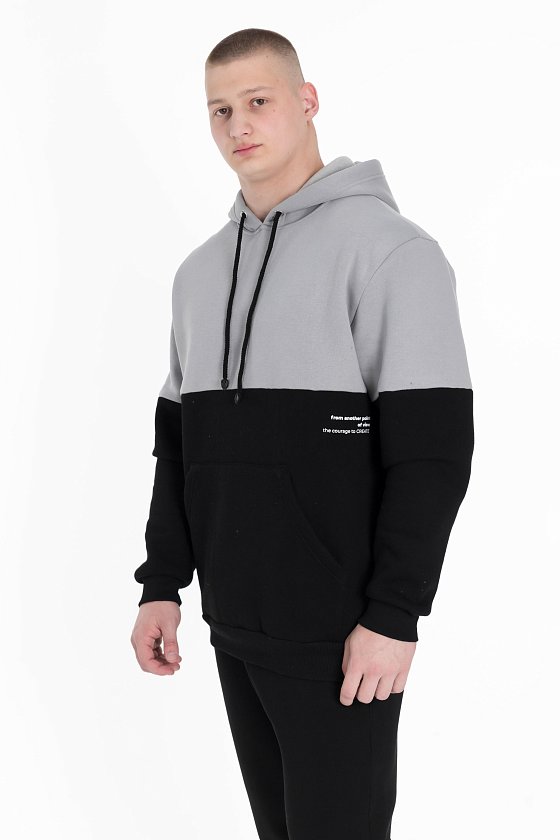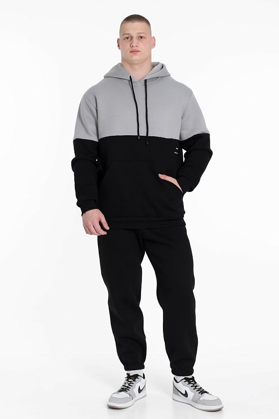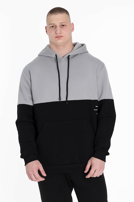 Представляем тёплую толстовку из футера 3-х нитки с начёсом в двухцветном исполнении: серый и чёрный.