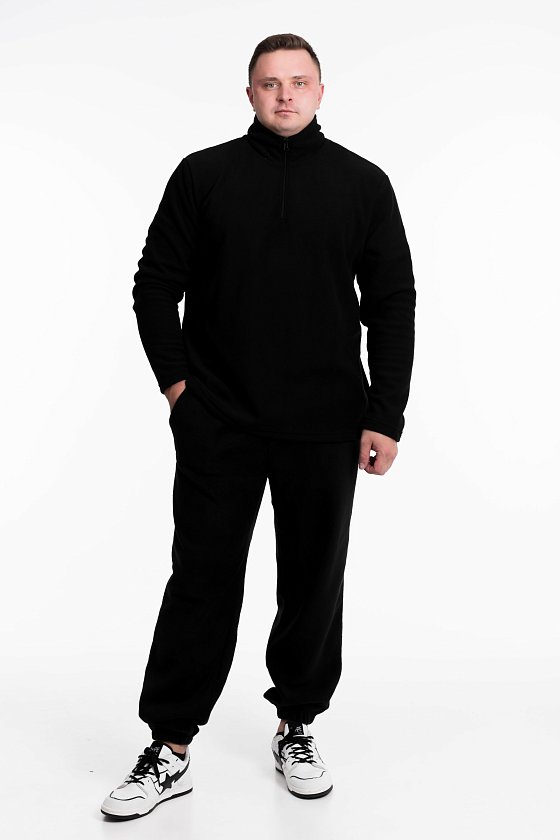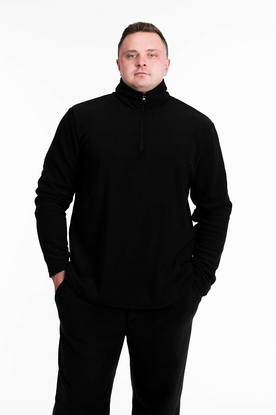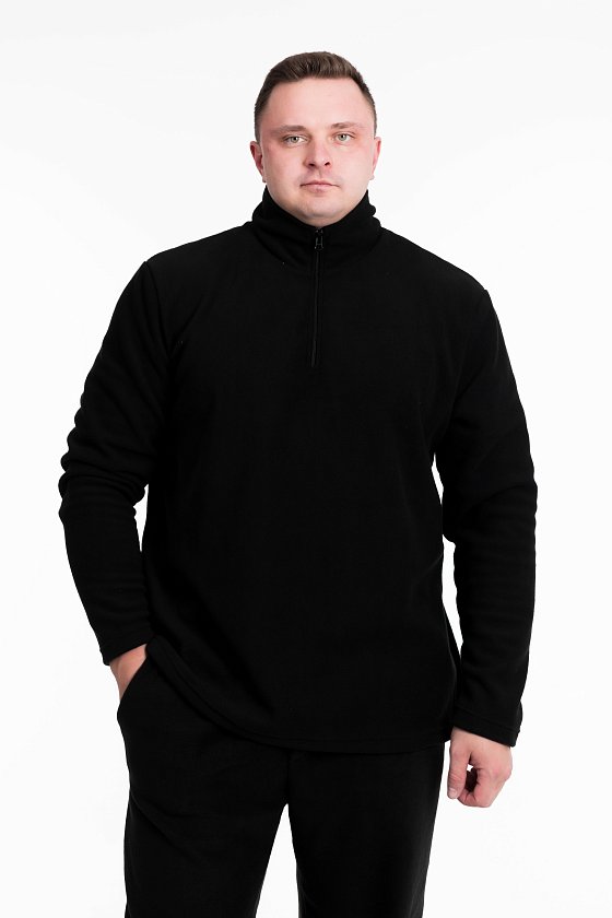 Мужская толстовка из флиса с воротником-стойкой, втачными рукавами и короткой застежкой на молнию.