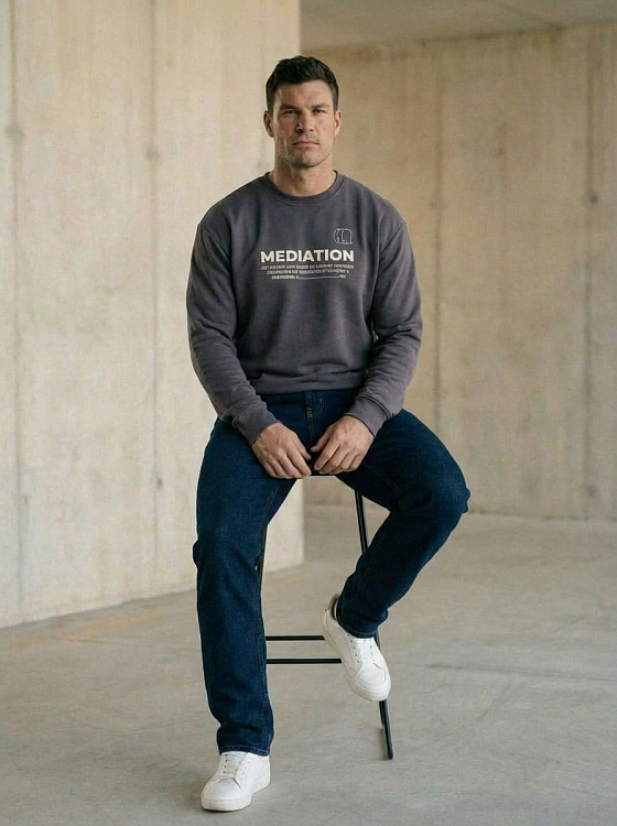 Мужская толстовка выполнена из однотонного футера с лайкрой, мягкого и комфортного для повседневной носки. Модель имеет длинные слегка приспущенные рукава, что обеспечивает свободную посадку и удобство в движении. Горловина оформлена притачной планкой, манжеты и пояс выполнены в тон основному материалу, создавая аккуратный и завершённый вид. Спереди расположен стильный принт, который добавляет изделию современный характер. Толстовка отлично подходит для прогулок, отдыха и повседневного гардероба.
