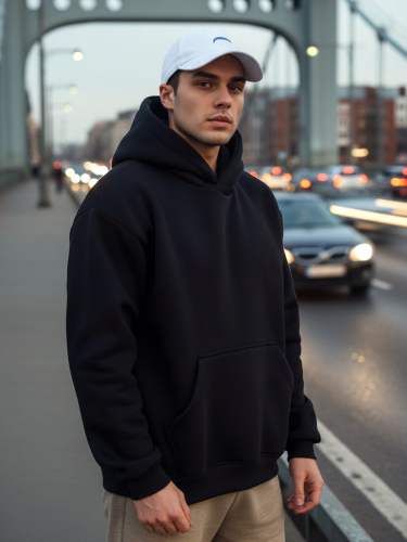 Толстовка мужская футер 3-х нитка начес пенье "БРУНО" ЧЕРНЫЙ
