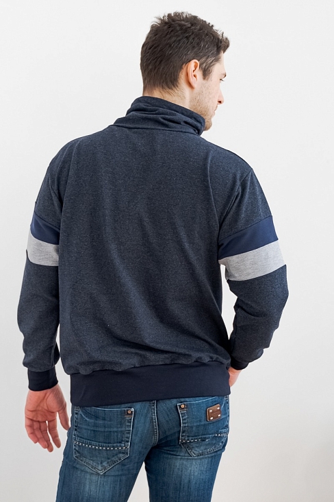 Толстовка мужская из футера Оскар индиго из комбинированной ткани. Воротник-хомут, карман-кенгуру.