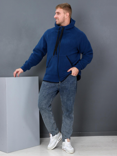 Толстовка мужская Страйкер имеет свободный крой, что делает её удобной для повседневной носки. На груди расположен карман с чёрной нашивкой. Капюшон регулируется шнурком, рукава и низ на манжете, что обеспечивает комфорт и защиту от ветра. Толстовка выглядит практичной и стильной, идеально подходящей для активного отдыха или повседневной жизни.
