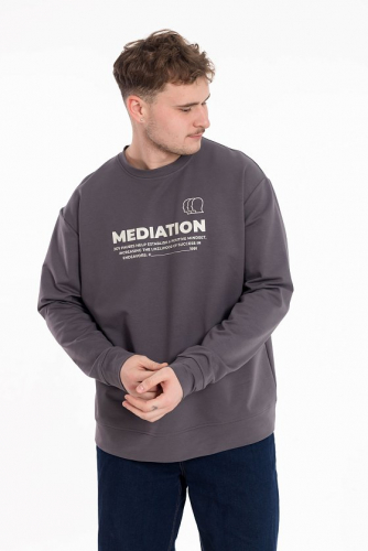 Мужская толстовка выполнена из футера с начесом (трёхнитка). Толстовка с капюшоном со шнуром и длинными рукавами. Спереди нанесён принт и расположен карман-кенгуру. Манжеты рукавов и притачной низ изделия из основного полотна.