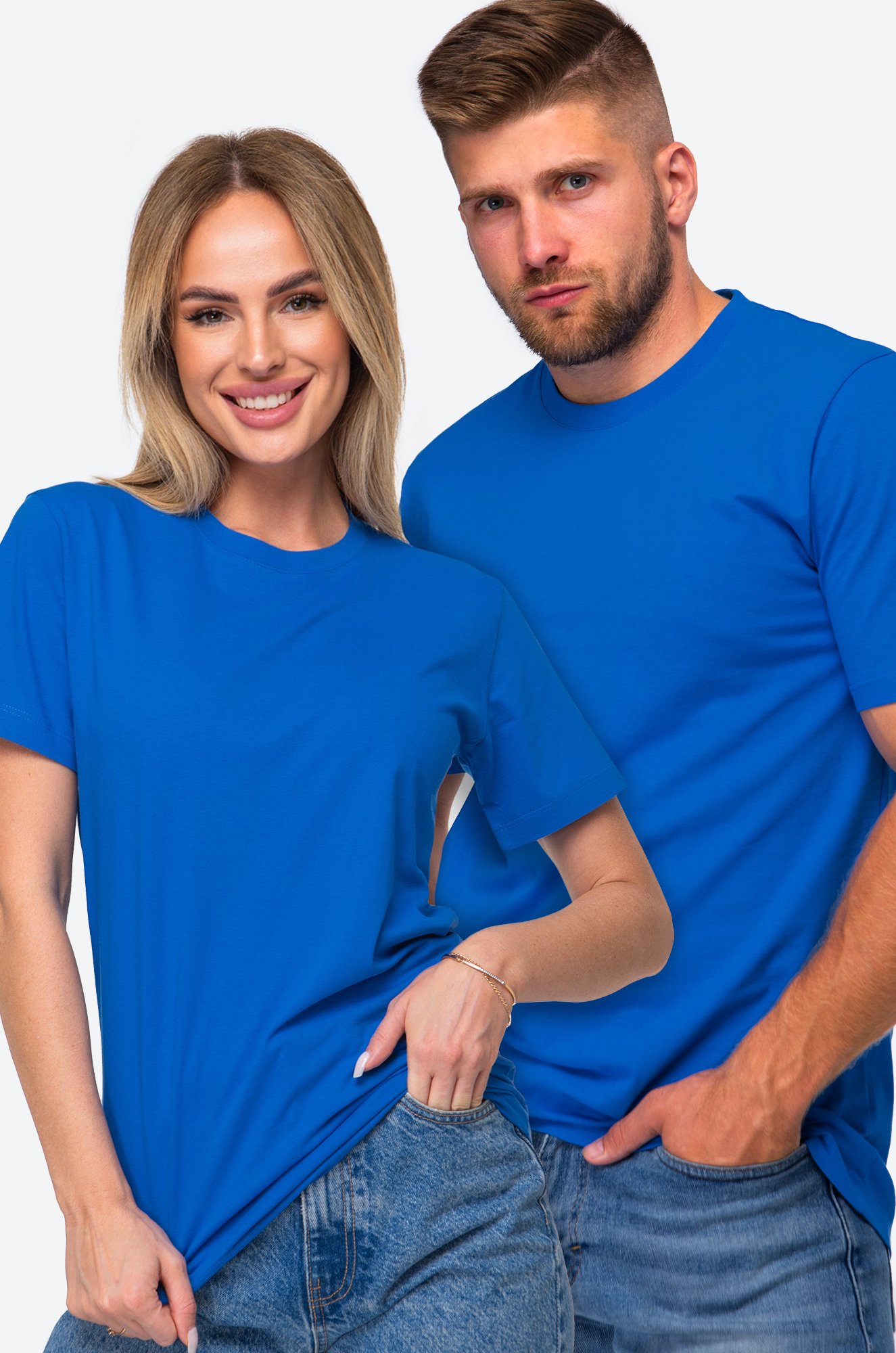 Одно..показатьтонная футболка унисекс – тот случай, когда не нужно придумывать, что надеть. Футболка василькового цвета универсальна: она подходит и для женщин, и для мужчин. Классическая модель с коротким рукавом выполнена из натурального 100% хлопка.