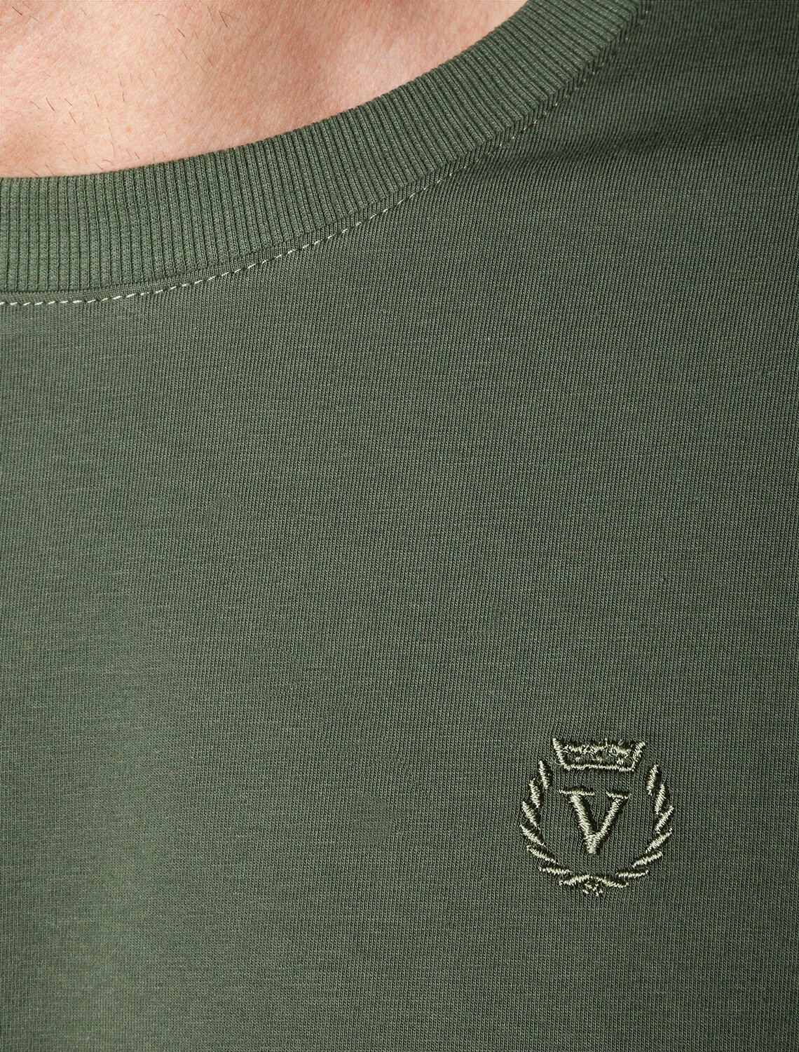 Футболка с вышитым логотипом бренда выполнена из премиального хлопка. Особым преимуществом является наличие эластана в составе изделия. Очень приятная на ощупь и комфортная при носке, футболка сохранит свой безупречный внешний вид в течении долгого времени. Модель дополнена нашивкой из эко-кожи с логотипом VILATTE.