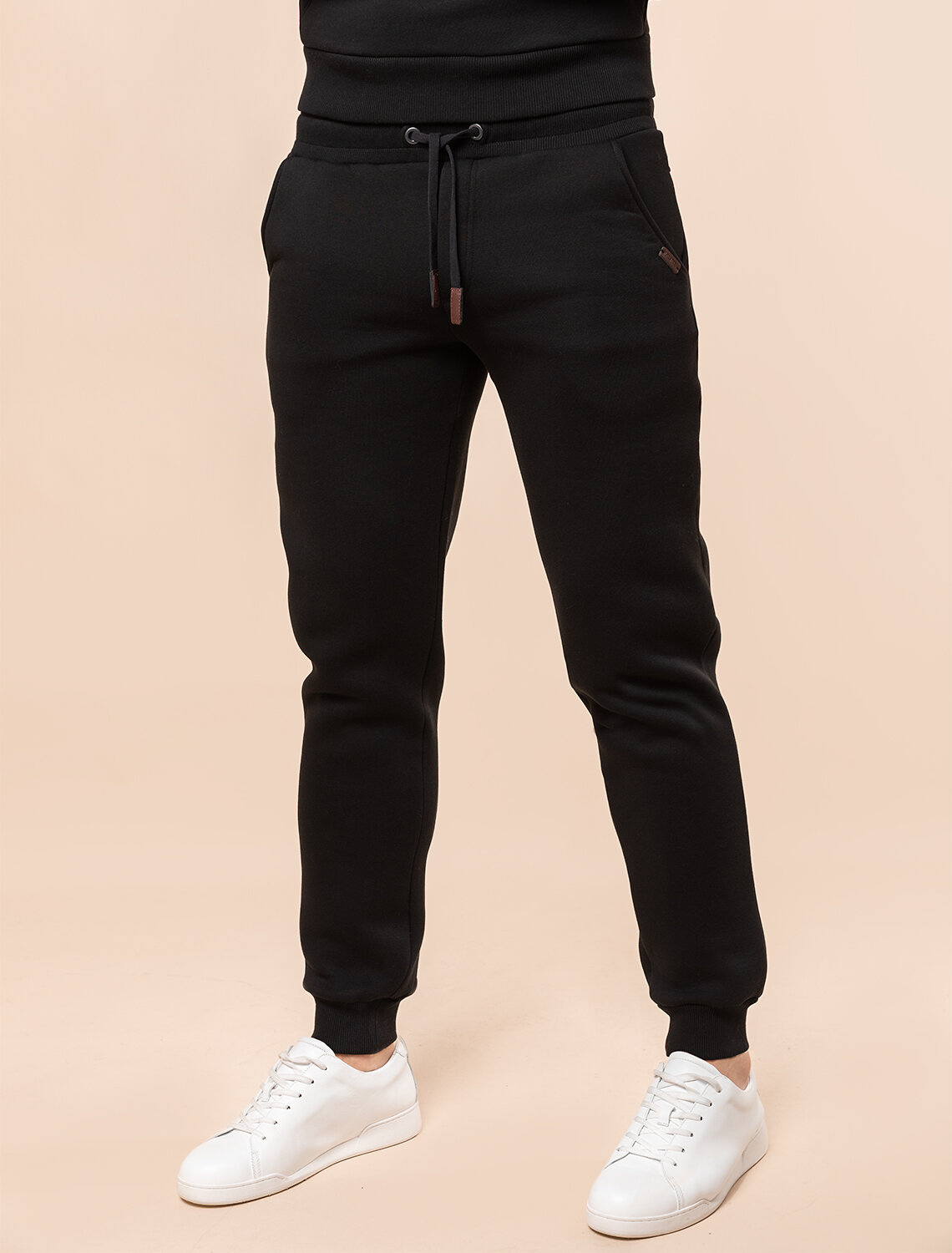 Теплые брюки-джоггеры выполнены из теплого футера-трехнитки с начесом. Эластичный пояс на резинке дополнительно регулируется хлопковым шнурком. Наличие эластана в составе изделия способствует формоустойчивости. Изделие украшено фирменным логотипом бренда из эко-кожи. Сочетайте в костюме с худи U49.022