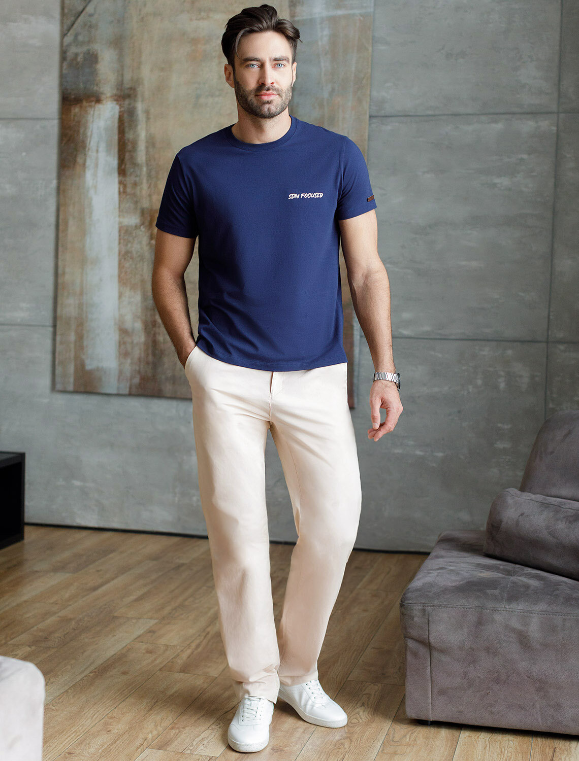Брюки выполнены из хлопкового твилла. Слегка зауженные внизу чиносы дополнены классическими карманами и шлевками на поясе. Эластичное изделие хорошо держит форму, обладает высокой воздухопроницаемостью и прочностью. Сохраняет форму и цвет в течении долгого времени, не сковывает движений. Изделие дополнено фирменным патчем.