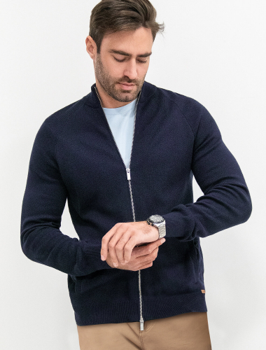Черный джемпер с длинными рукавами поддержит образы любой палитры и сложности. За многофункциональность отвечают лаконичный крой и застежка на молнию. Изделие связано из премиального хлопка с добавлением акрила, которые не дадут замерзнуть в прохладный день на улице, но при этом не перегревает в помещении.