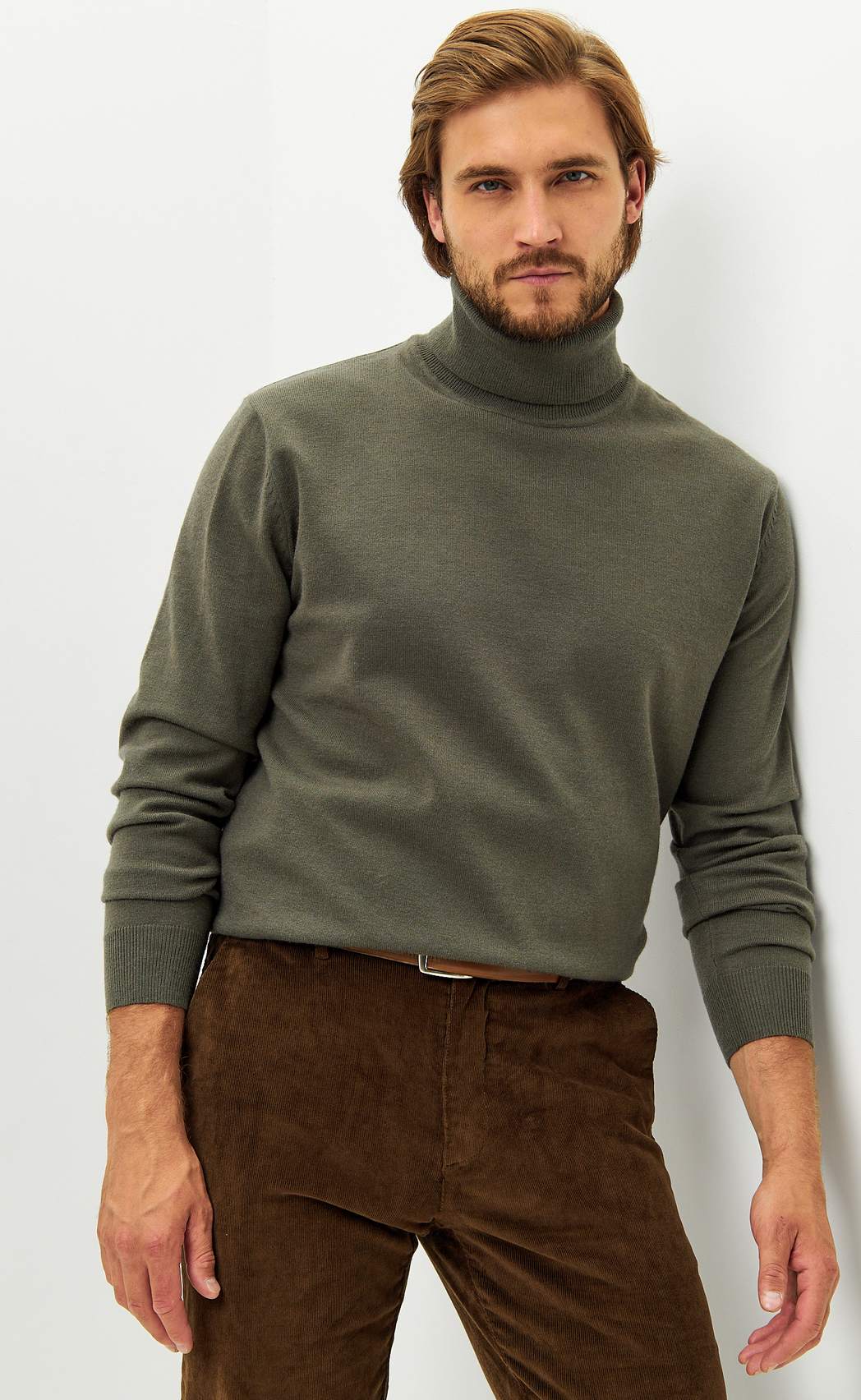 Водолазка мужская от бренда Fine Joyce цвета хаки. Водолазка с высоким горлом полуприлегающего кроя выполнена из мягкого трикотажного полотна с антипиллинговым эффектом (не образуются катышки), не линяет, очень хорошо держит форму после многочисленных стирок (стирать при температуре 30С). Такой свитер теплый идеально сидит по фигуре, а приятный к телу трикотаж (50% акрил 40% полиэстер 10% шерсть) создает максимальный комфорт и ощущение уюта в холодную погоду. Бадлон представлен в нескольких цветах, среди которых универсальная черная водолазка. Благодаря натуральному волокну в составе и дышащему эффекту материала, лонгслив мужской с воротником комфортен и уютен для повседневной носки. В размерном ряде имеется наличие больших. Купить мужские водолазки оптом можно зарегестрировавшись на сайте. В карточке товара Вы найдете размерные характеристики, которые помогут Вам определиться с размером. Fine Joyce динамично развивающийся российский бренд. Fine Joyce — высокое качество по оптимальной цене!