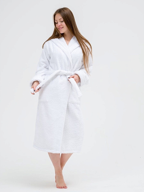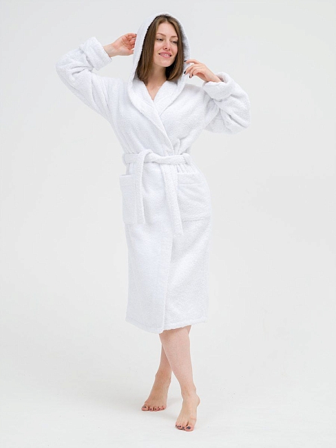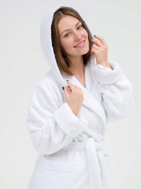 Женский махровый халат с капюшоном / белый