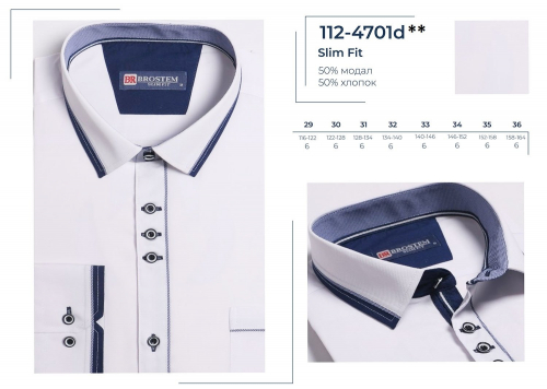 ZHX009H-3X** (XXS-XL).Сорочка подростковая дл.рукав притал.,BROSTEM, XXS-XL (6шт)