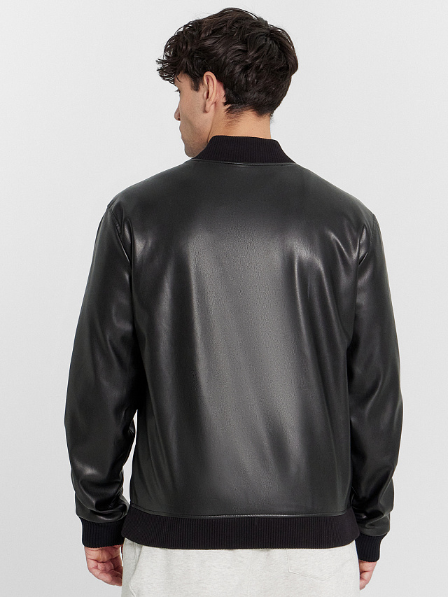 Представляем мужской кожаный бомбер прямого силуэта. Эта модель выполнена в свободном стиле и оснащена подкладкой, что обеспечивает дополнительный комфорт и тепло. Горловина округлой формы с воротником-стойкой придает изделию элегантный и современный вид. Модель выполнена из высококачественной искусственной кожи, что делает её не только стильной, но и экологичной. Длинные рукава с эластичными манжетами обеспечивают удобную посадку, а боковые карманы добавляют практичности. Застежка-молния завершает ее современный внешний вид. Этот бомбер станет отличным дополнением вашего гардероба, предлагая сочетание стиля и функциональности для прохладных дней.