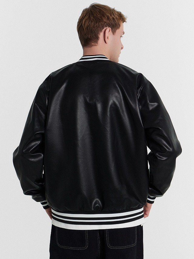 Бомбер мужской кожаный черный