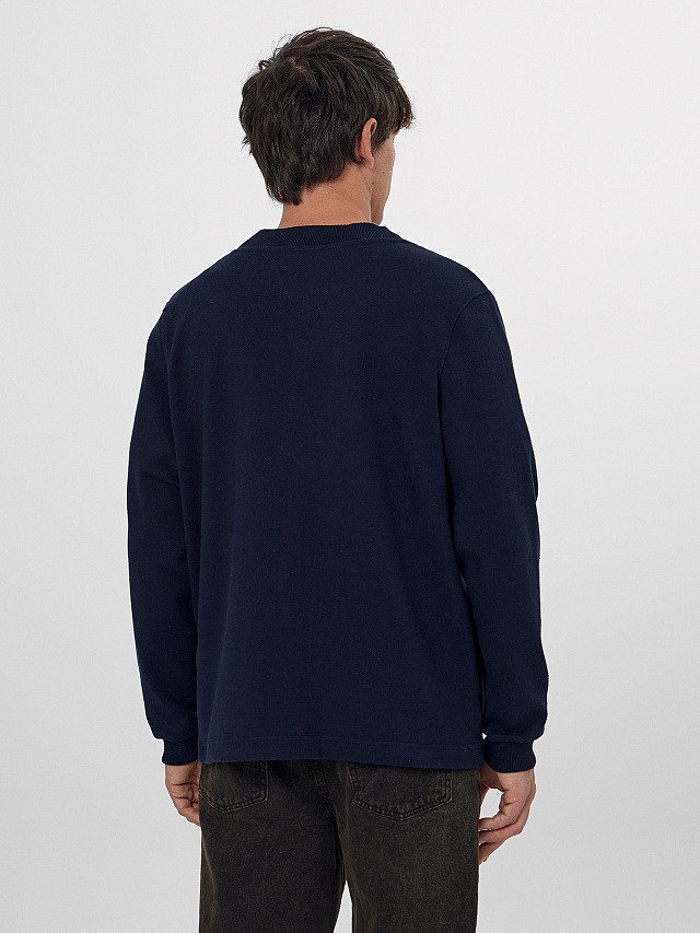 Темно-синий мужской кардиган станет надежной базой в прохладную погоду. Он выполнен из плотного эластичного трикотажа, который хорошо держит форму и приятен на ощупь. Свободный крой с V-образным вырезом и длинными рукавами создает расслабленный, но аккуратный силуэт.