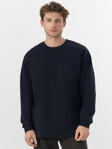 Лонгслив выполнен из кулирной глади — легкого и дышащего трикотажа на основе хлопка. Круглая горловина и длинные рукава обработаны эластичной рибаной, которая помогает сохранять форму. Отличительной деталью являются наружные швы по линии плеча, добавляющие модели индустриальный акцент и фактурность. Спереди слева расположен накладной карман с такими же контрастными швами, подчеркивающими стиль.