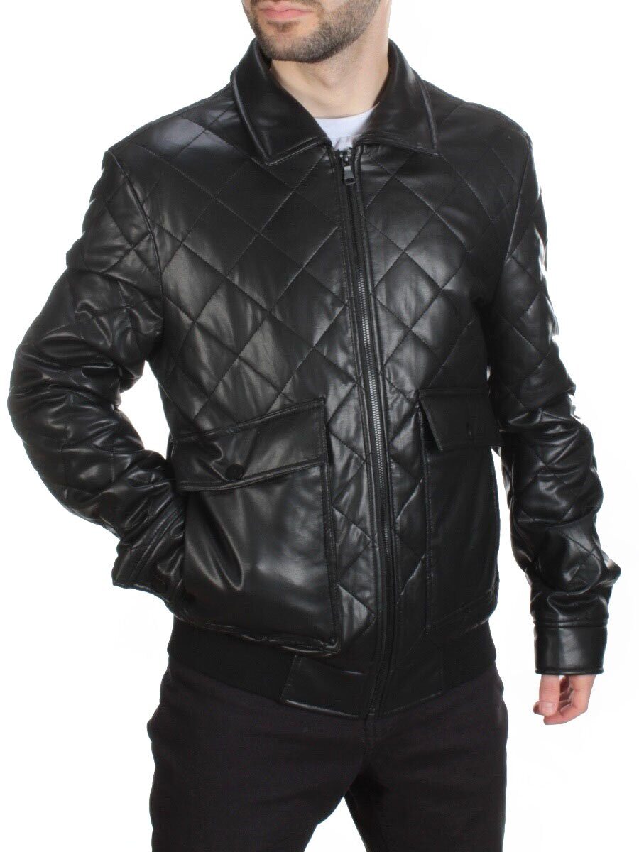 156 BLACK Куртка из эко-кожи мужская (50 гр. синтепон)