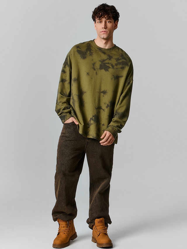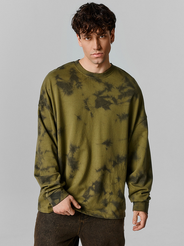 Свитшот оверсайз мужской зеленый с эффектом варки